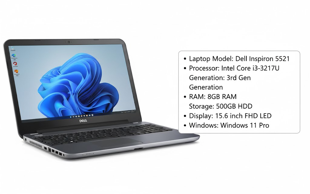 Laptop Dell Inspiron 5521 Core i3 3rd Gen 8GB RAM 500GB HDD 15.6''' FHD LED Windows Pro 11