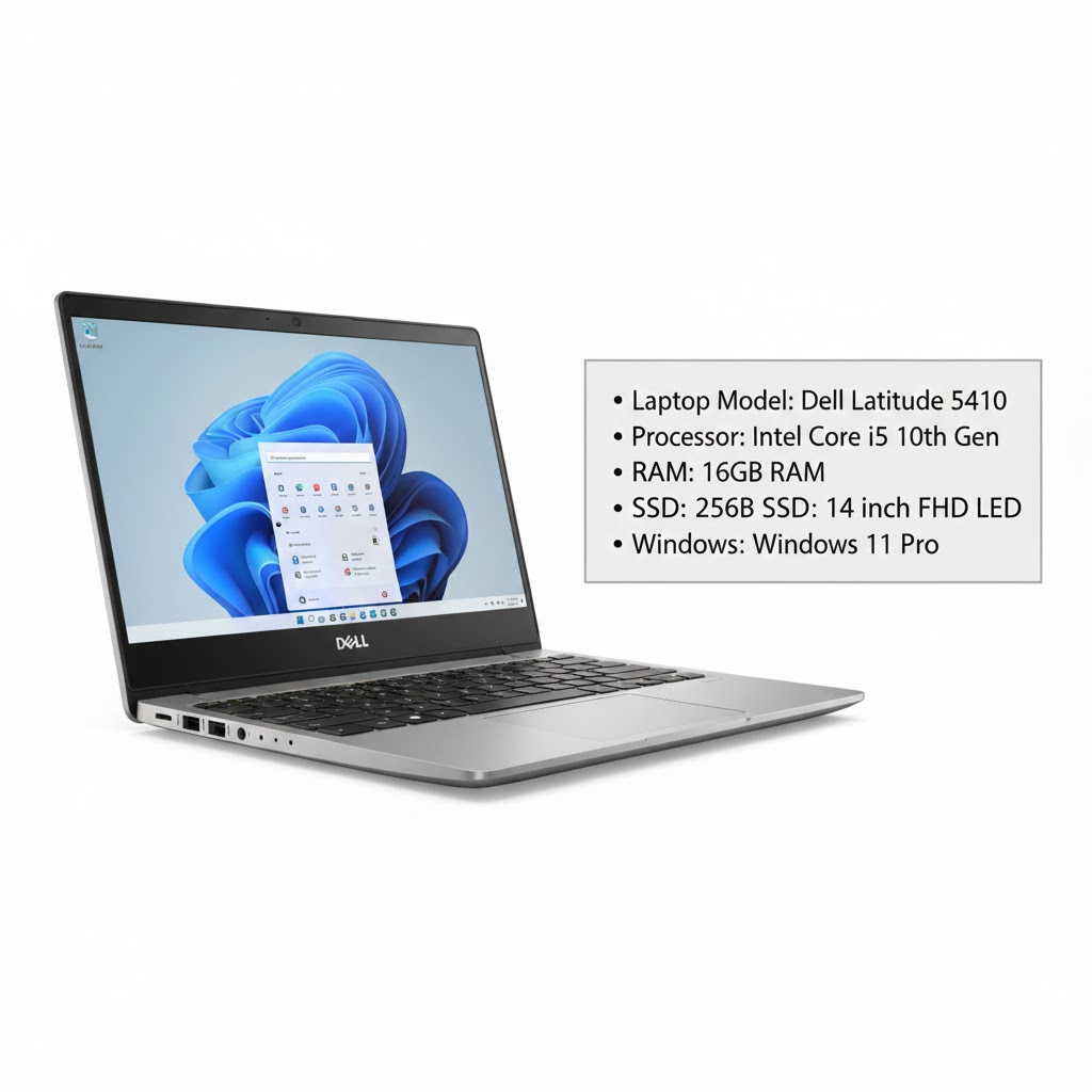 Laptop Dell Latitude 5410 Intel Core i5 10th 16-GB RAM 256GB SSD 14" FHD LED Windows Pro 11