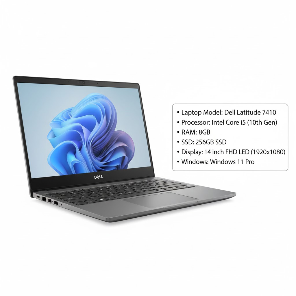 Laptop Dell Latitude 7410 Core i5 10th Gen, 8-GB RAM, 256GB SSD, 14″ FHD LED, Windows 11 Pro