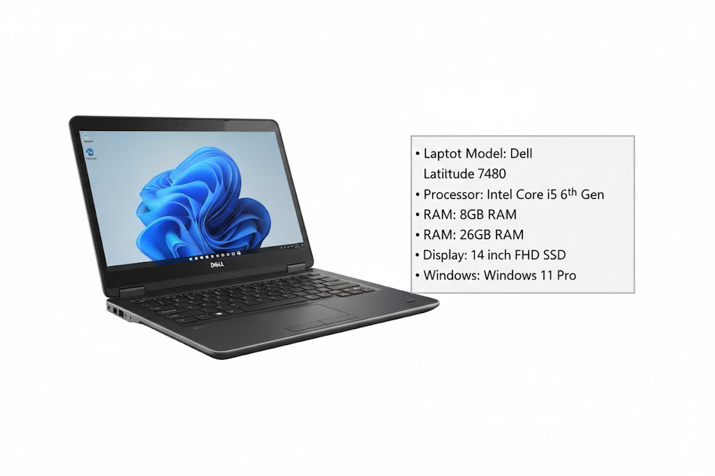 Laptop Dell Latitude 7480 Core i5 7th Gen 8GB RAM 256GB SSD 14'' FHD LED Windows Pro 11
