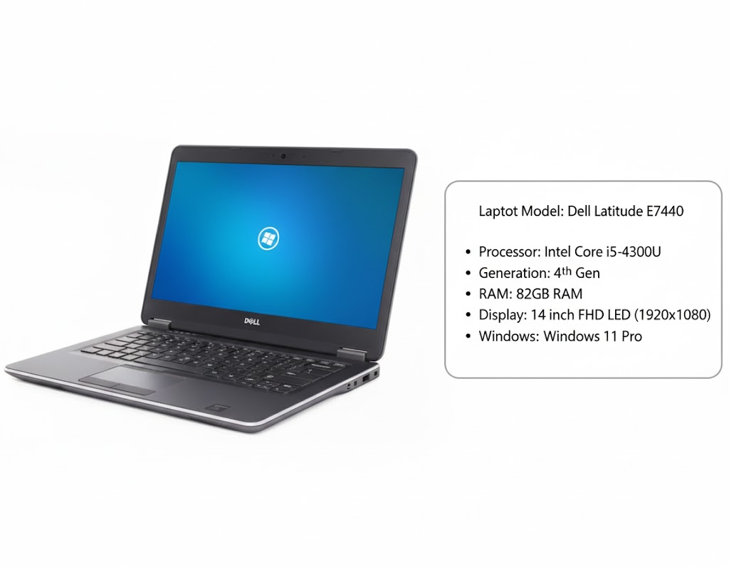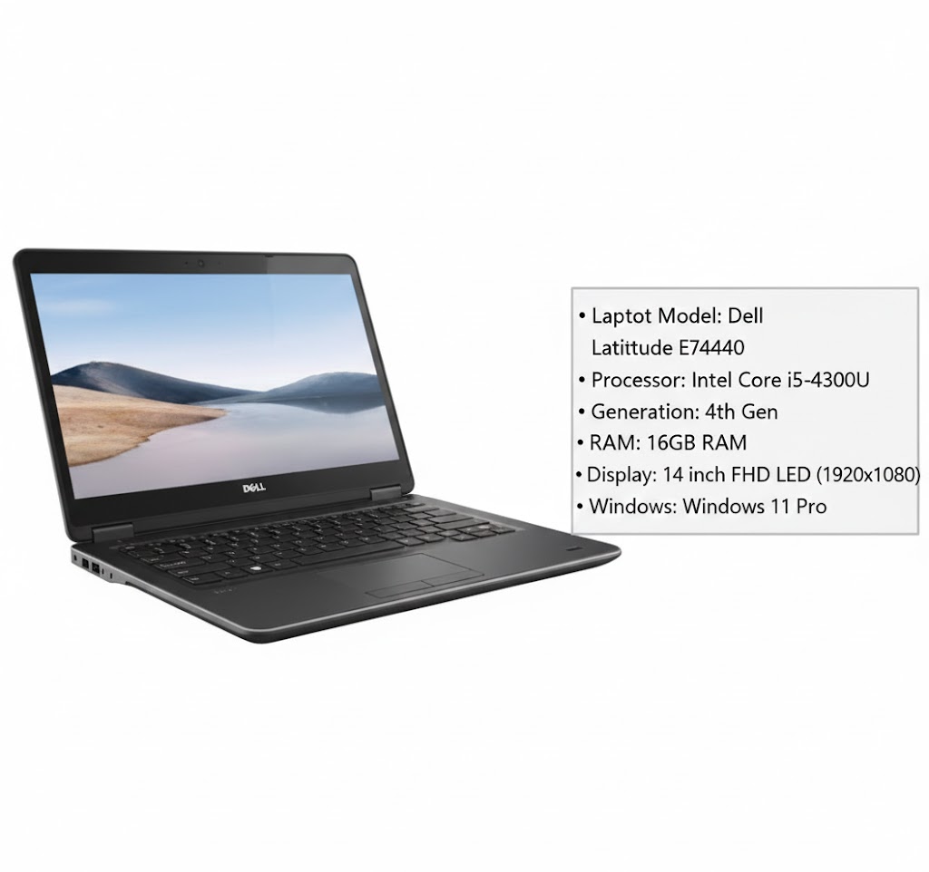 Laptop Dell Latitude E7440 Core i5 4th Gen 16GB RAM 128GB SSD 14'' FHD LED Full HDWindows Pro 11