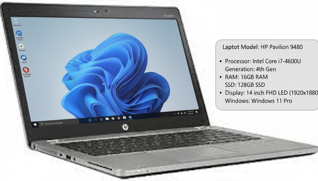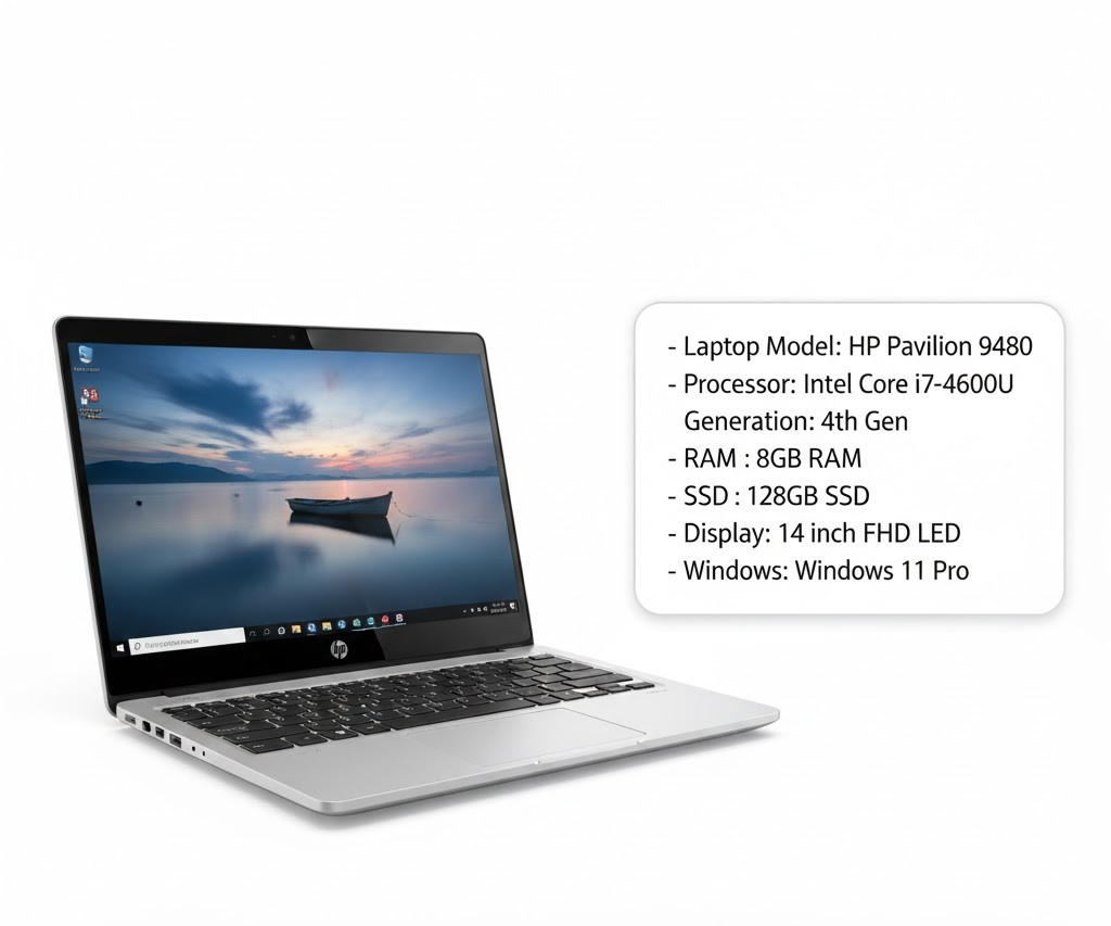 Laptop HP Pavilion 9480 Core i7 4th Gen 8GB RAM 128GB SSD 14'' FHD LED Windows Pro 11