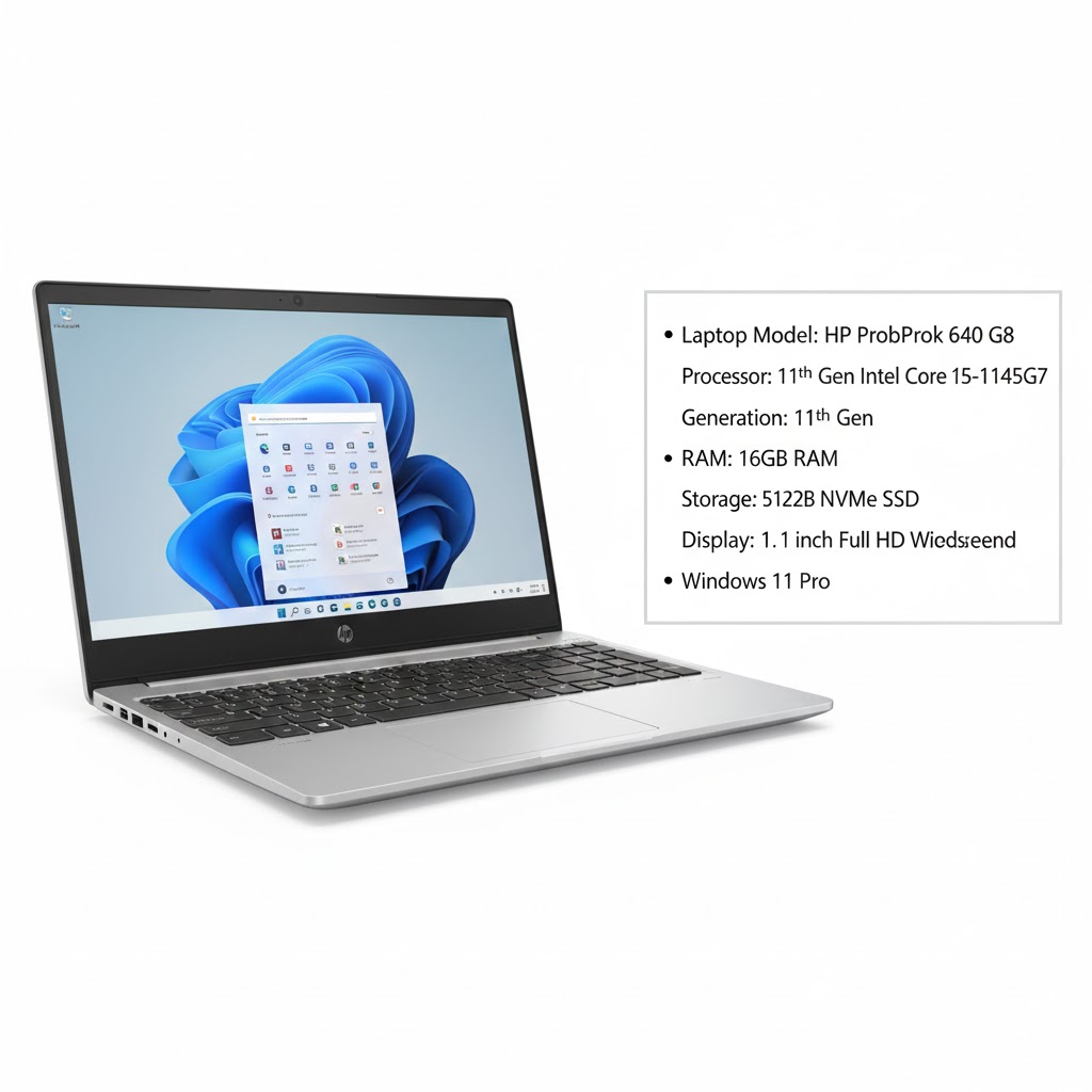 Laptop HP ProBook 640 G8 | 11th Gen Intel Core i5-1145G7 | 16GB RAM | 512GB NVMe SSD | 14.1" Full HD Widescreen | Windows 11 Pro