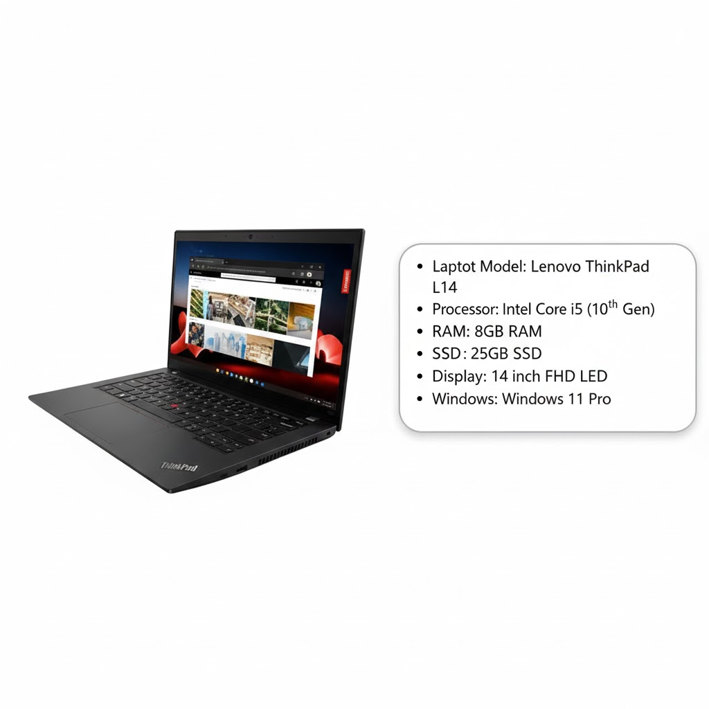 Laptop Lenovo ThinkPad L14 Core i5 10th Gen 16GB RAM 256GB SSD 14'' FHD LED Windows Pro 11