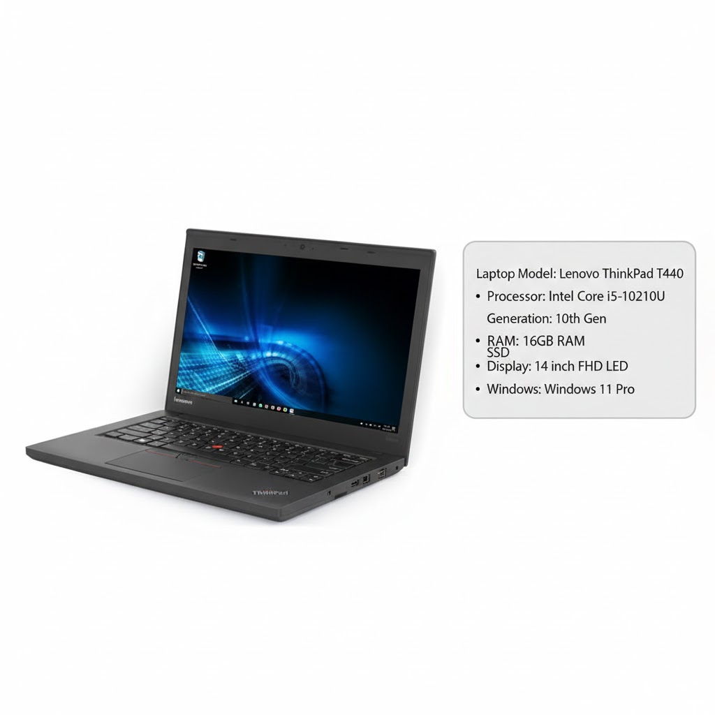 Laptop Lenovo ThinkPad T440 Core i5 10th Gen 16GB RAM 128GB SSD 14'' FHD LED Windows Pro11