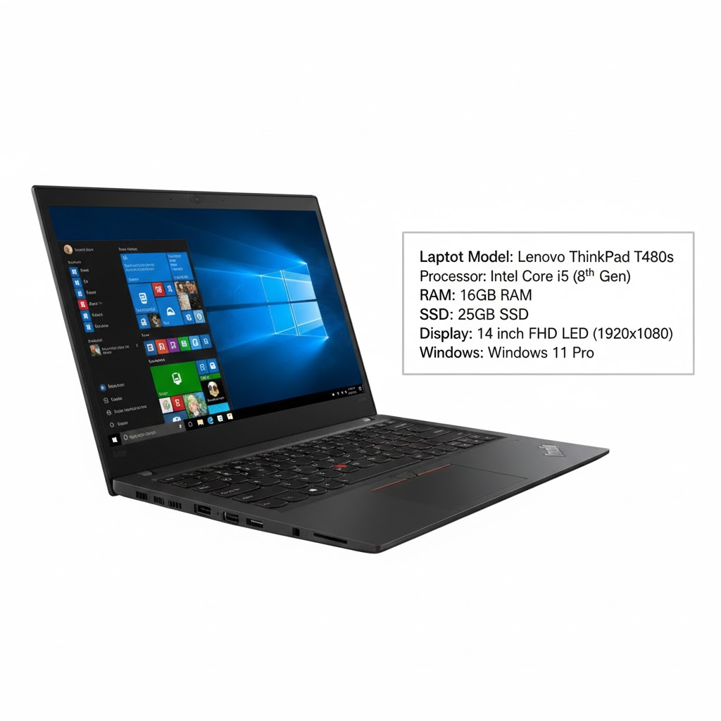 Laptop Lenovo ThinkPad T480s Core i5 8th Gen 16GB RAM 256GB SSD 14'' FHD LED Windows Pro 11