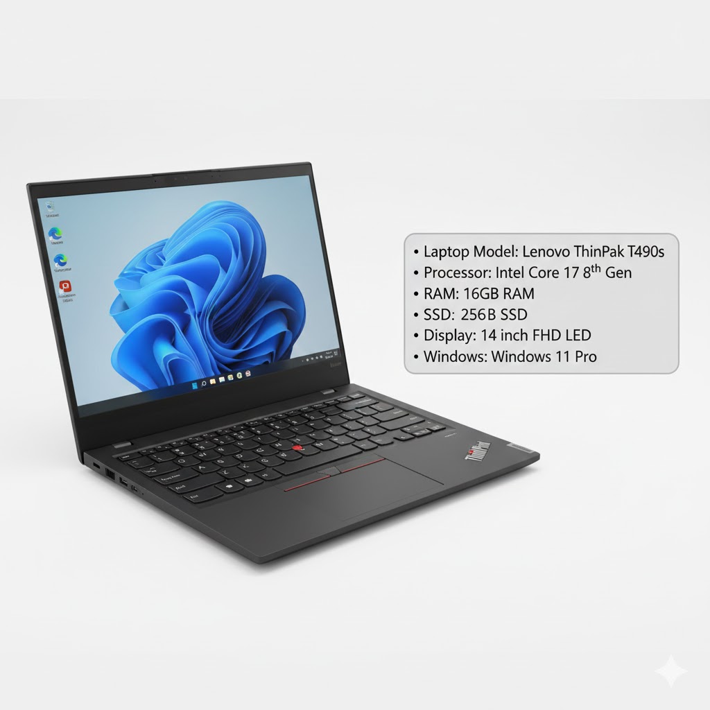 Laptop Lenovo ThinkPad T490s Core i7 8th Gen 16GB RAM 256GB 14'' FHD LED Windows Pro 11
