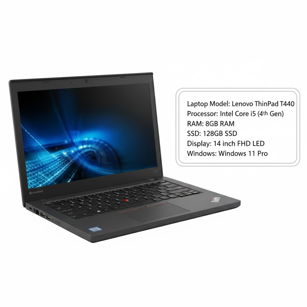 Laptop Lenovo Thinkpad T440 Core i5 4th Gen 8GB RAM 128GB SSD 14'' FHD LED Windows Pro 11